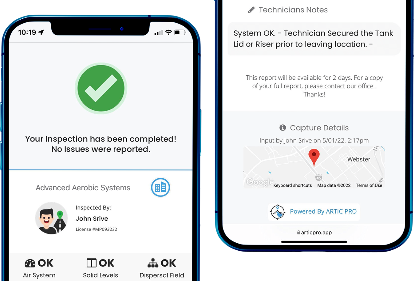 Additionally, our technicians take photos of any issues to provide clear communication, which are always available in your online dashboard along with other documents (such as past inspection reports, invoices, etc).