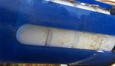 Because of this design, when re-filling the tube, only add the amount necessary for the month, as filling the tube completely with tablets will cause them to become stuck in the tube, preventing them from falling, and rendering the chlorination process inactive.